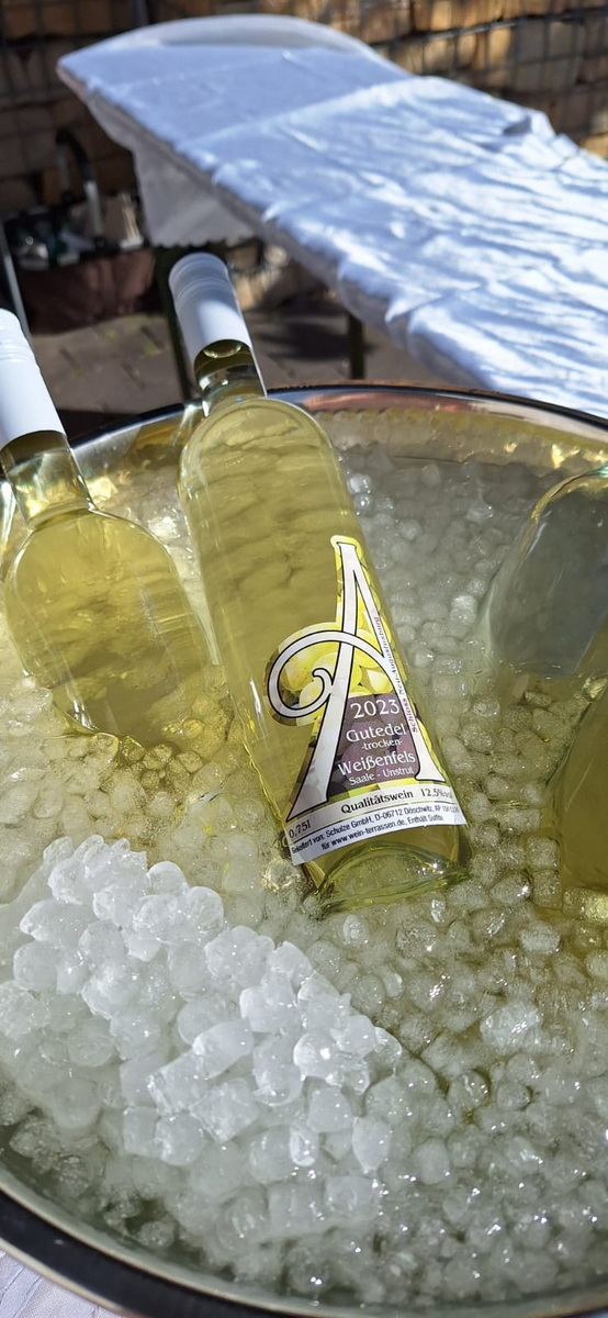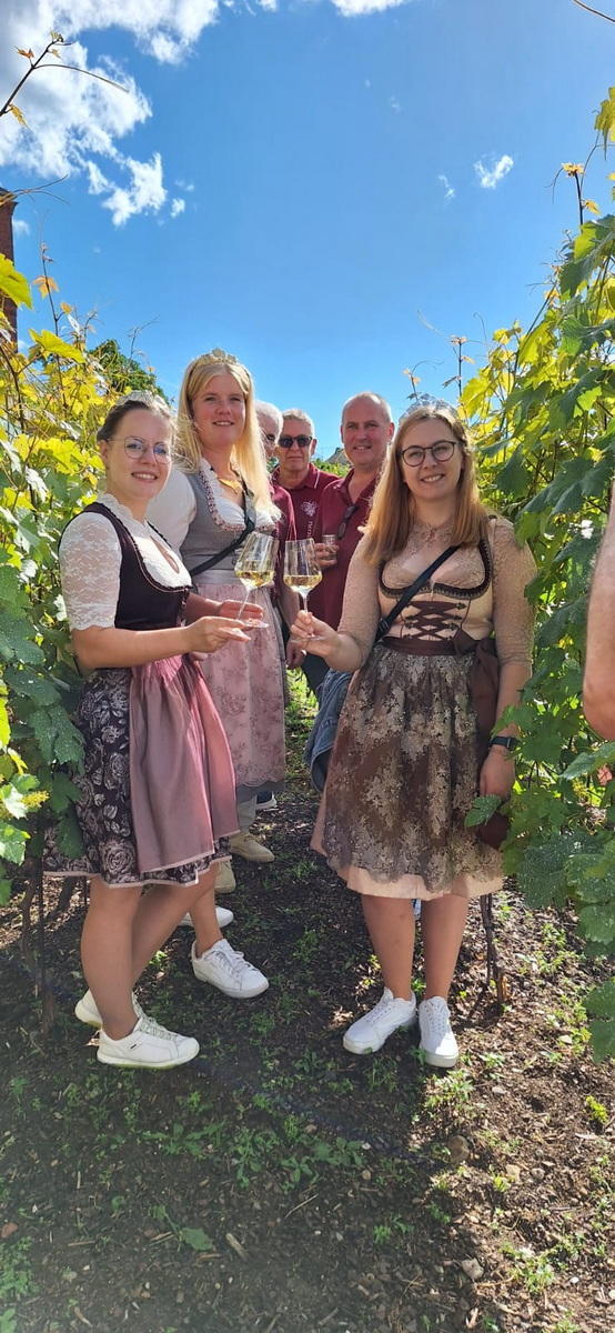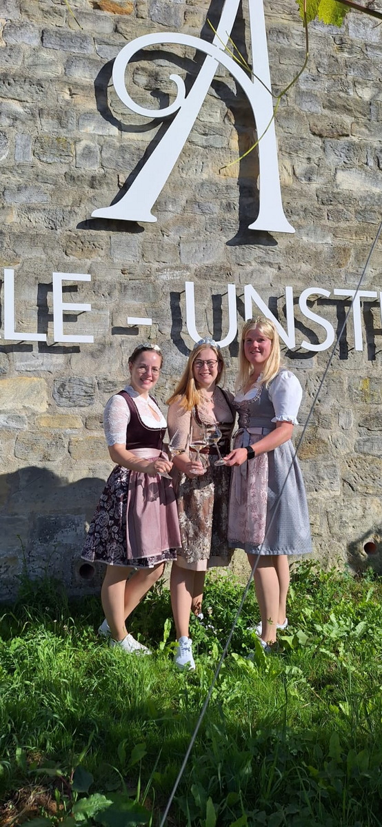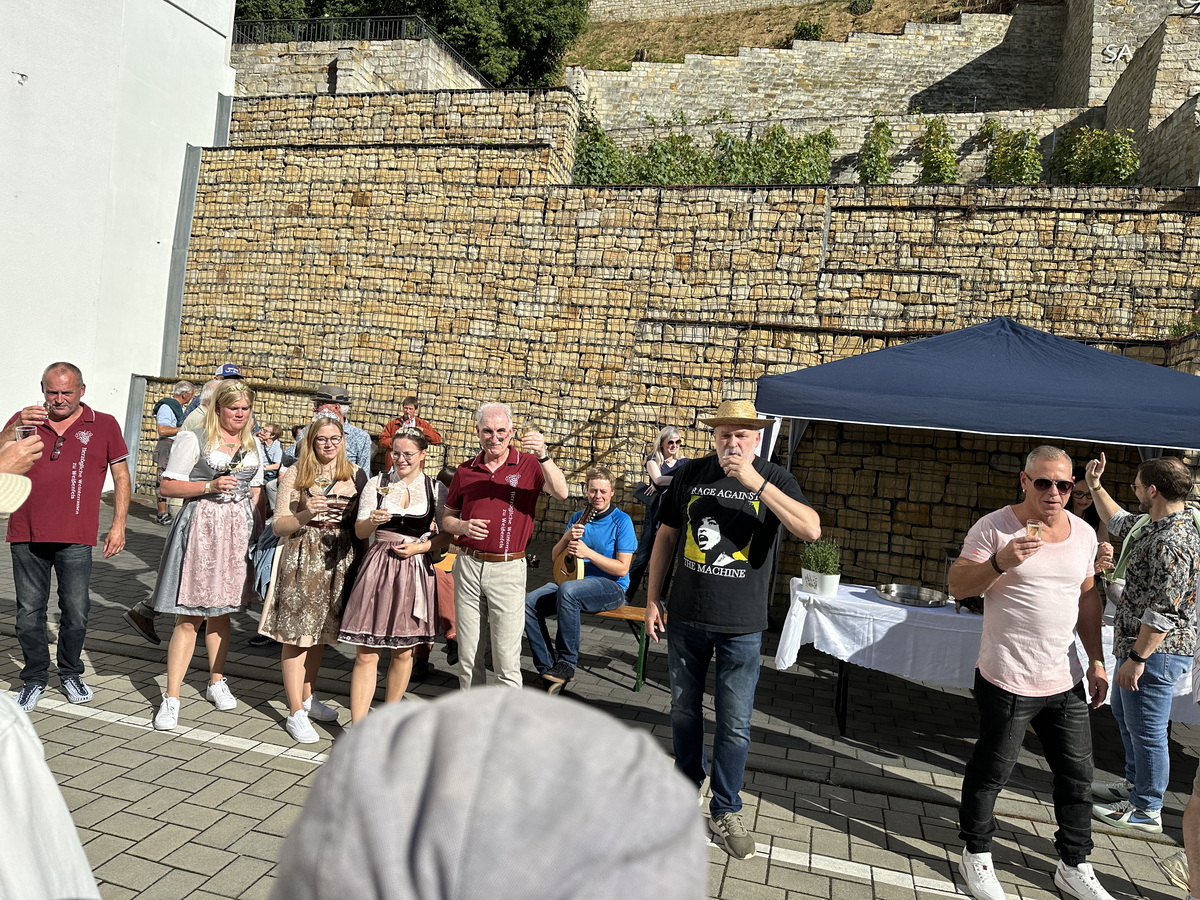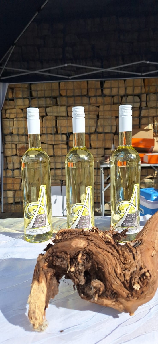 Zur Begüßung gab es einen Schluck des erst frisch abgefüllten 2023er Lagenweines von unseren Weinterrassen.