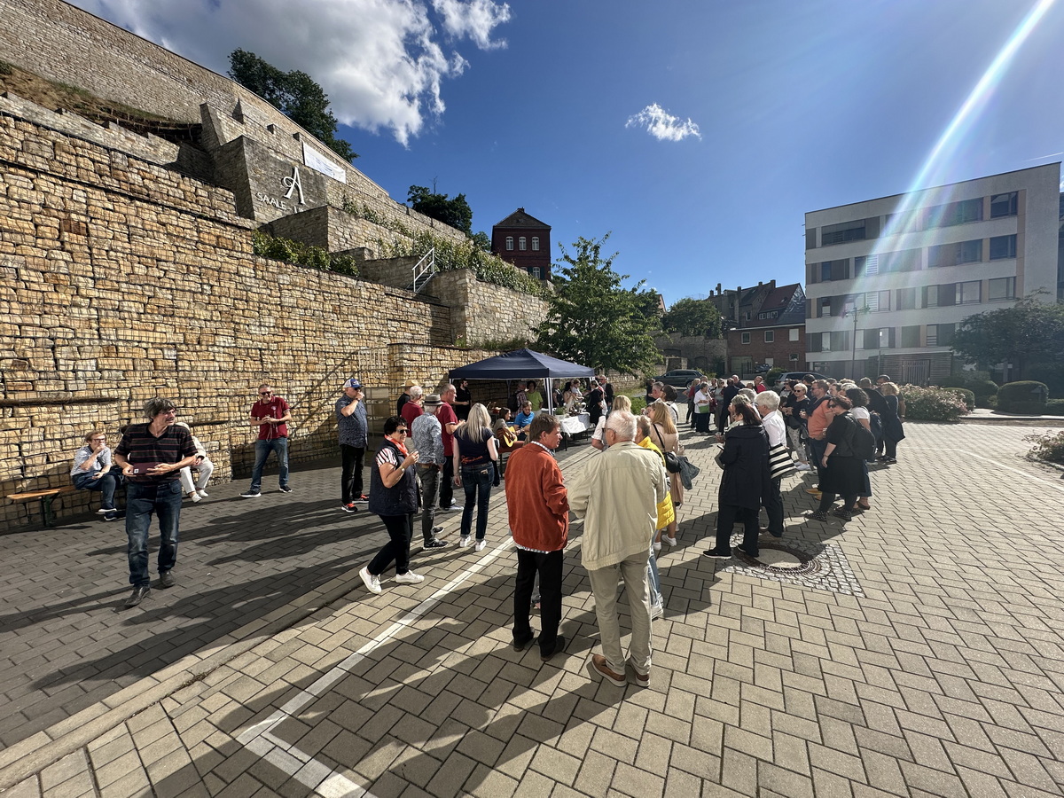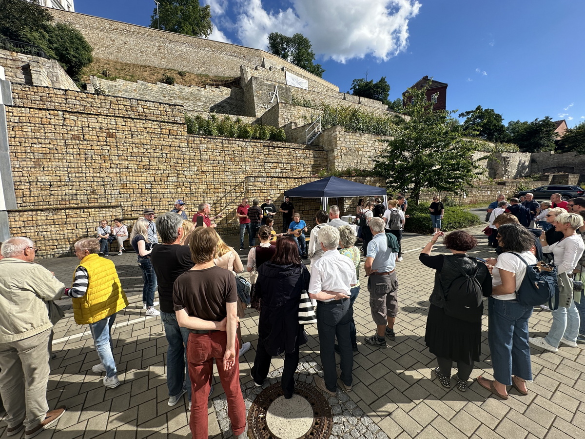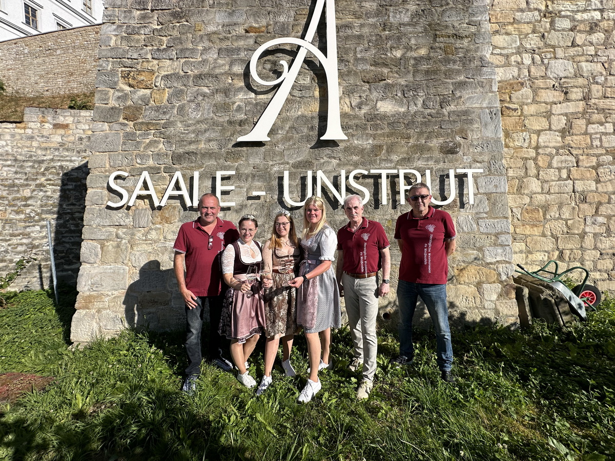 Zur Begüßung gab es einen Schluck des erst frisch abgefüllten 2023er Lagenweines von unseren Weinterrassen.